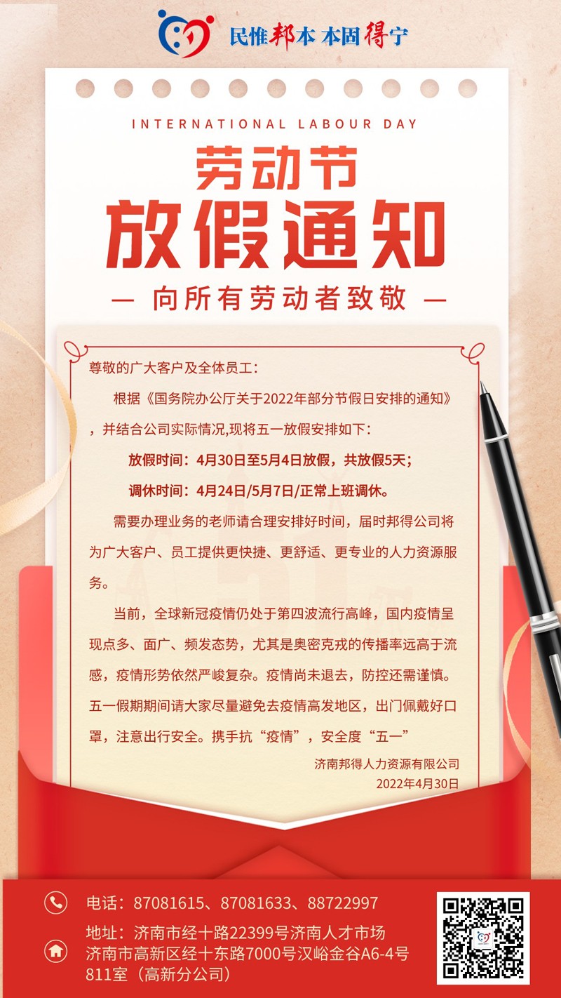 - 2024年5月濟南邦得人力資源有限公司總公司關(guān)于濟南市高...